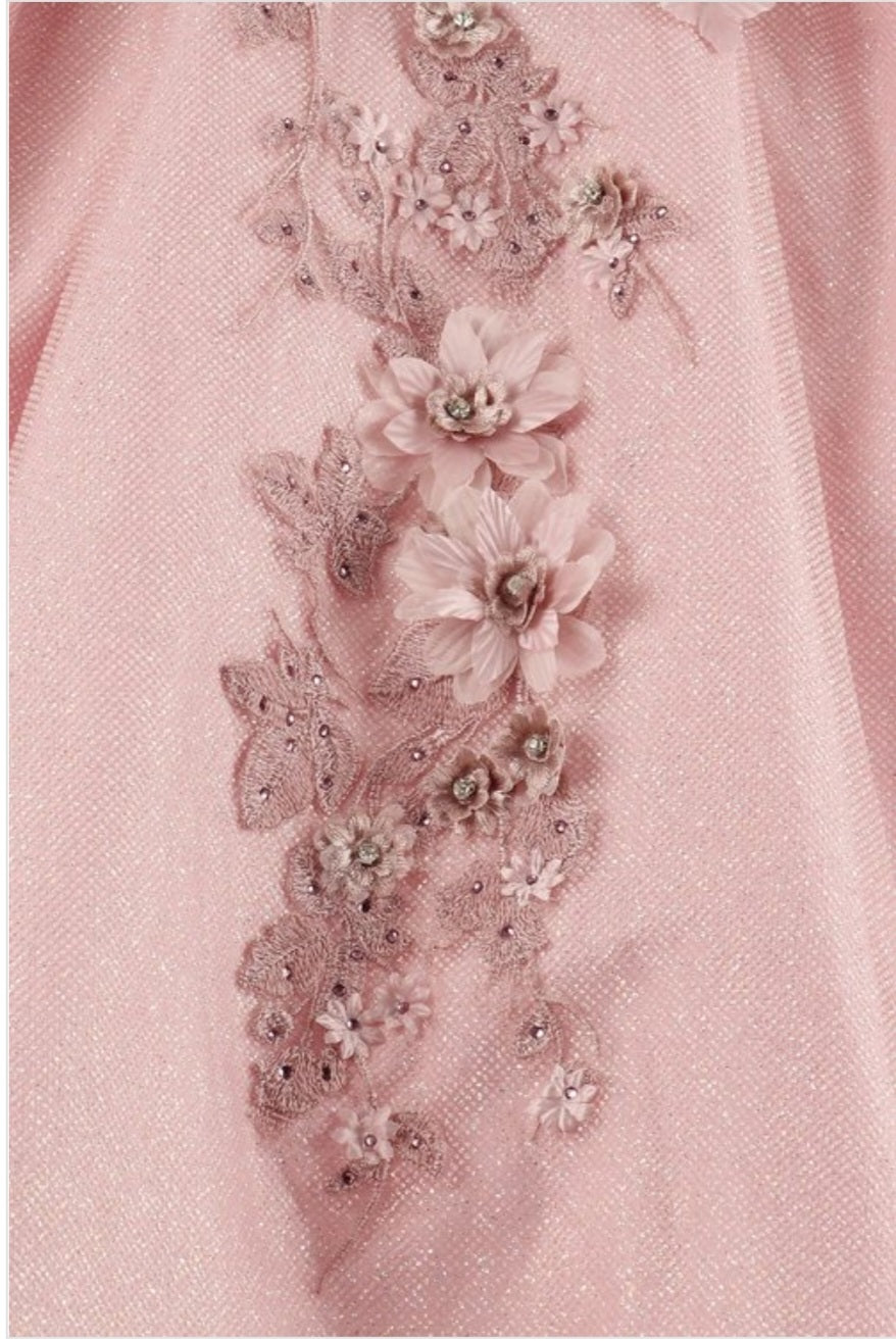 - Fabric: Glitter Poly, 3D Floral Appliques, Beaded Embellishments, Polyester