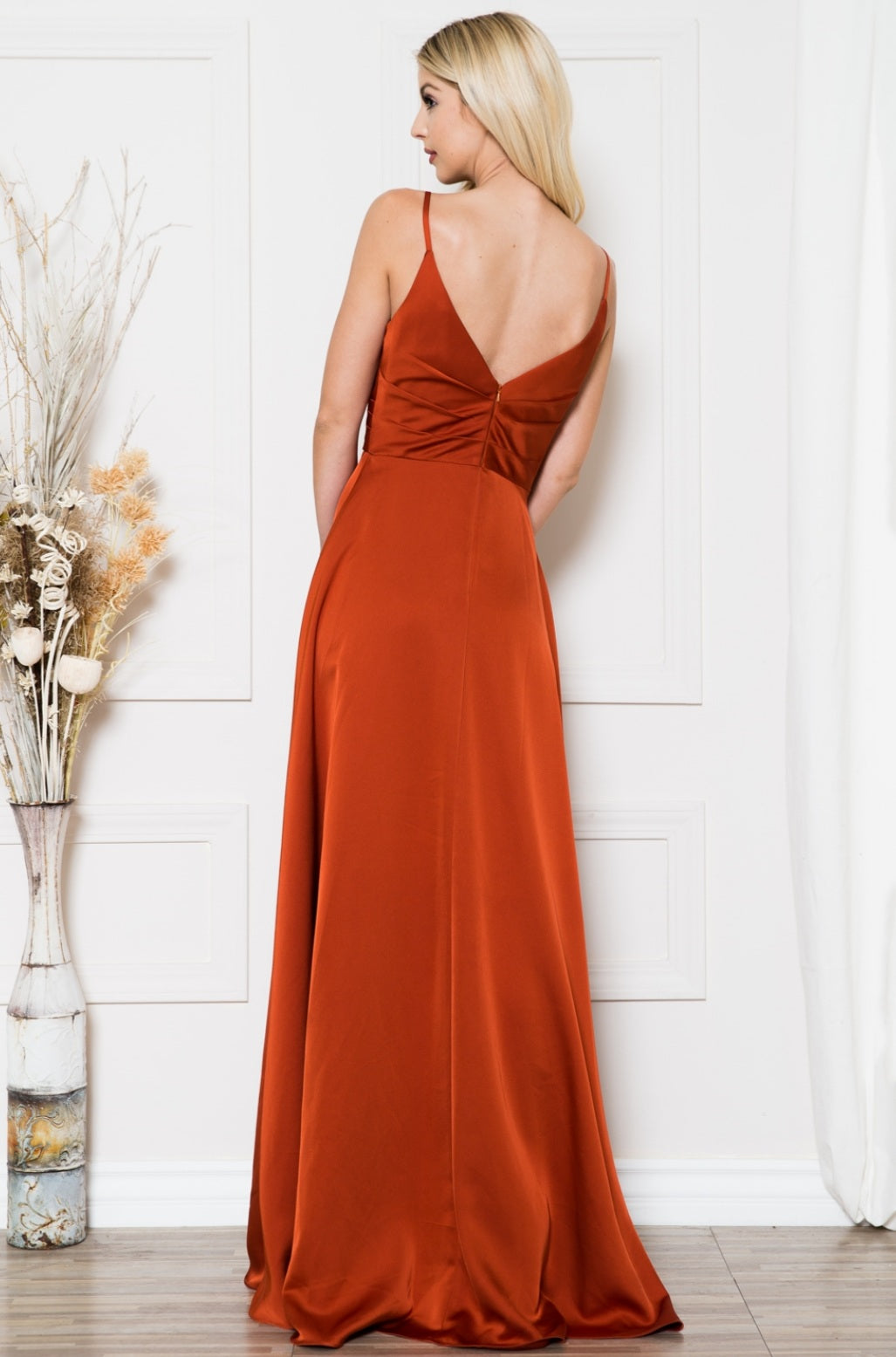 This dress is made of a gorgeous silk material and is full length with a fun slit and sweetheart neckline. perfect for your next event! This dress is great for wedding guests and bridesmaids or any special event you want to stand out in.