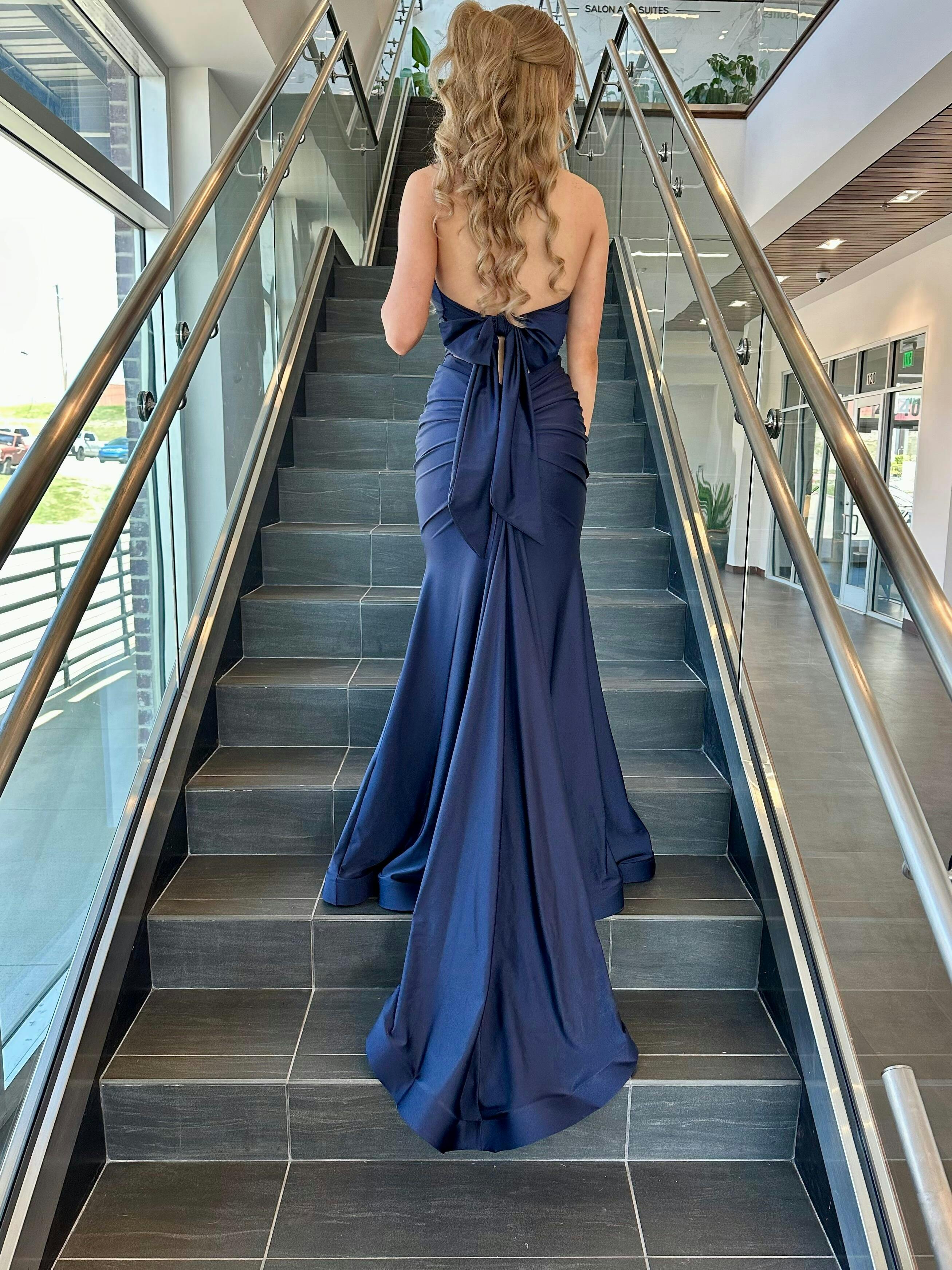This jersey masterpiece features a flattering halter-neckline, showcasing a sleeveless mermaid silhouette with exquisite ruched detailing. The open back design and back zipper add a touch of allure, ensuring a perfect fit. With a sweeping train and horsehair hem, this long gown exudes elegance and charm. Perfect for those seeking a blend of sophistication and contemporary style, Style 378 promises to captivate at any special occasion, making every moment unforgettable.