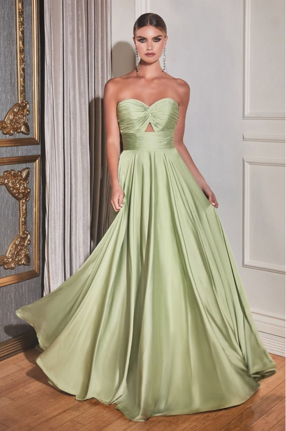 This dress features a luxurious satin A-line silhouette, with subtle gathering at the waistband and a keyhole gathered strapless bodice. Whether you’re getting ready for a special night out or dressing up for that upcoming wedding party, this strapless dress is sure to turn heads.