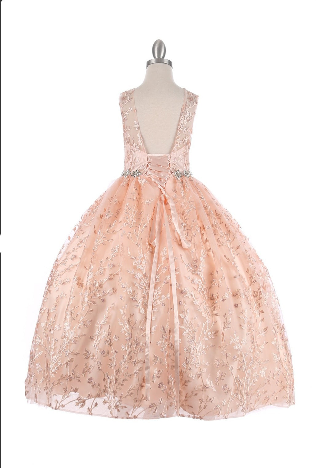 Elegant glitter embroidered lace floor length ball gown with corset back tie, waist with A quality rhinestone belt, dress is even more beautiful in lights with sparkling glitters!!