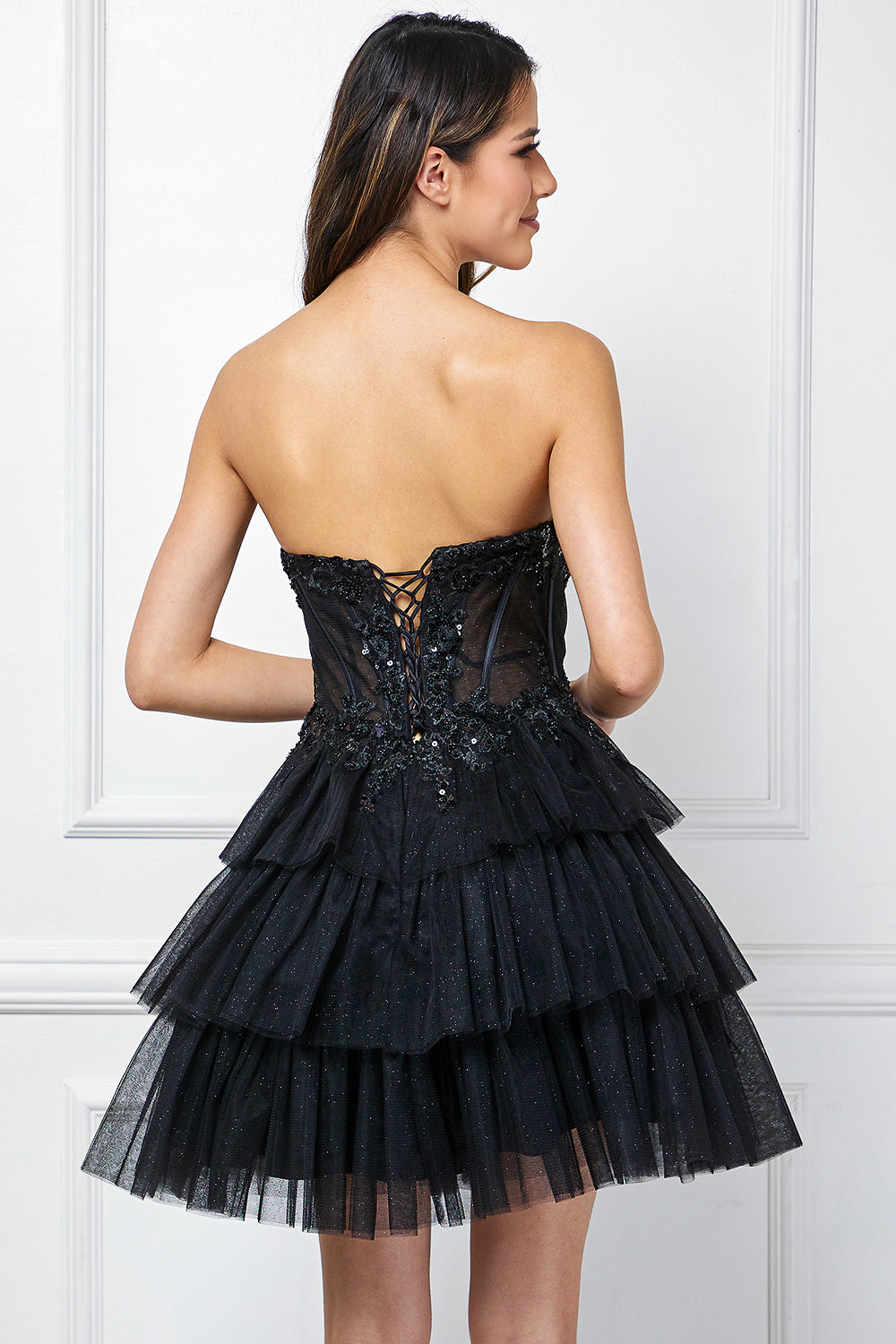 If you are looking for something truly spectacular for your next special occasion...? This mini dress is it!  Features beautiful, beaded bodice and corset back. The ruffle tier skirt is light and undeniably couture. Romantic and undeniably sweet, is a beautiful choice for cocktail party or homecoming. The mini dress is truly everything you can dream of, and it will take your breath away.