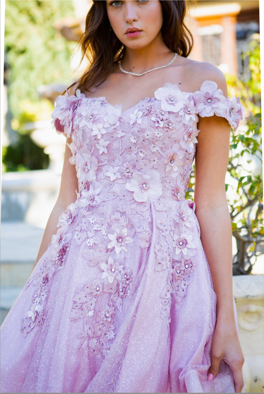• 3D flower detail, glitter tulle