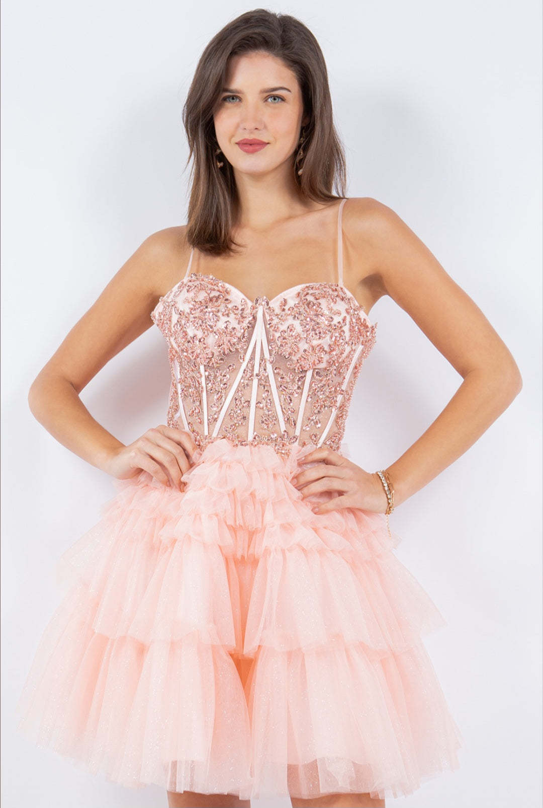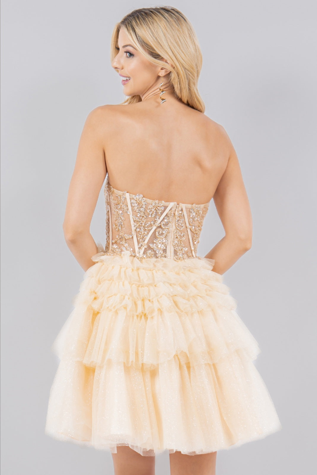 If you are looking for something truly spectacular for your next special occasion...? This mini dress is it! Features beautiful, beaded bodice and corset back. The ruffle tier skirt is light and undeniably couture. Romantic and undeniably sweet, is a beautiful choice for cocktail party or homecoming. The mini dress is truly everything you can dream of, and it will take your breath away.