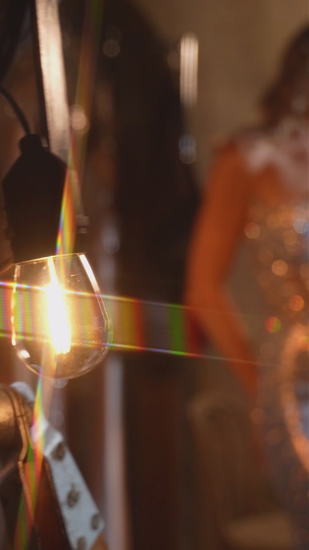 - Fabric & Material: Stretch metallic satin & crystal beaded overlay