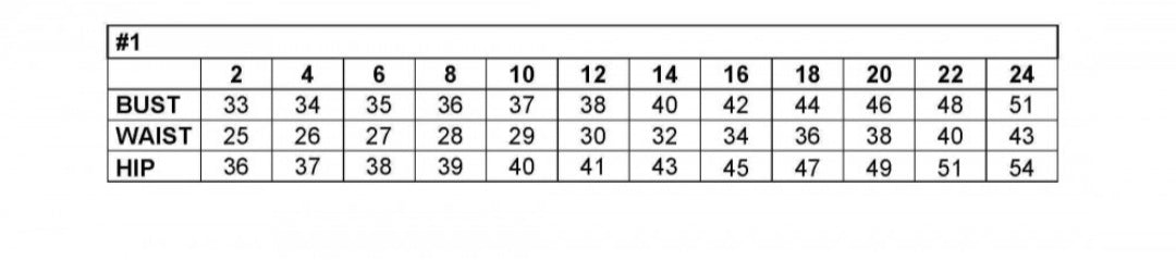 To ensure the perfect fit make sure you choose a larger size if you are in between two sizes. Also keep in mind that the dress may not be an exact fit and therefore may need alterations by your local tailor*