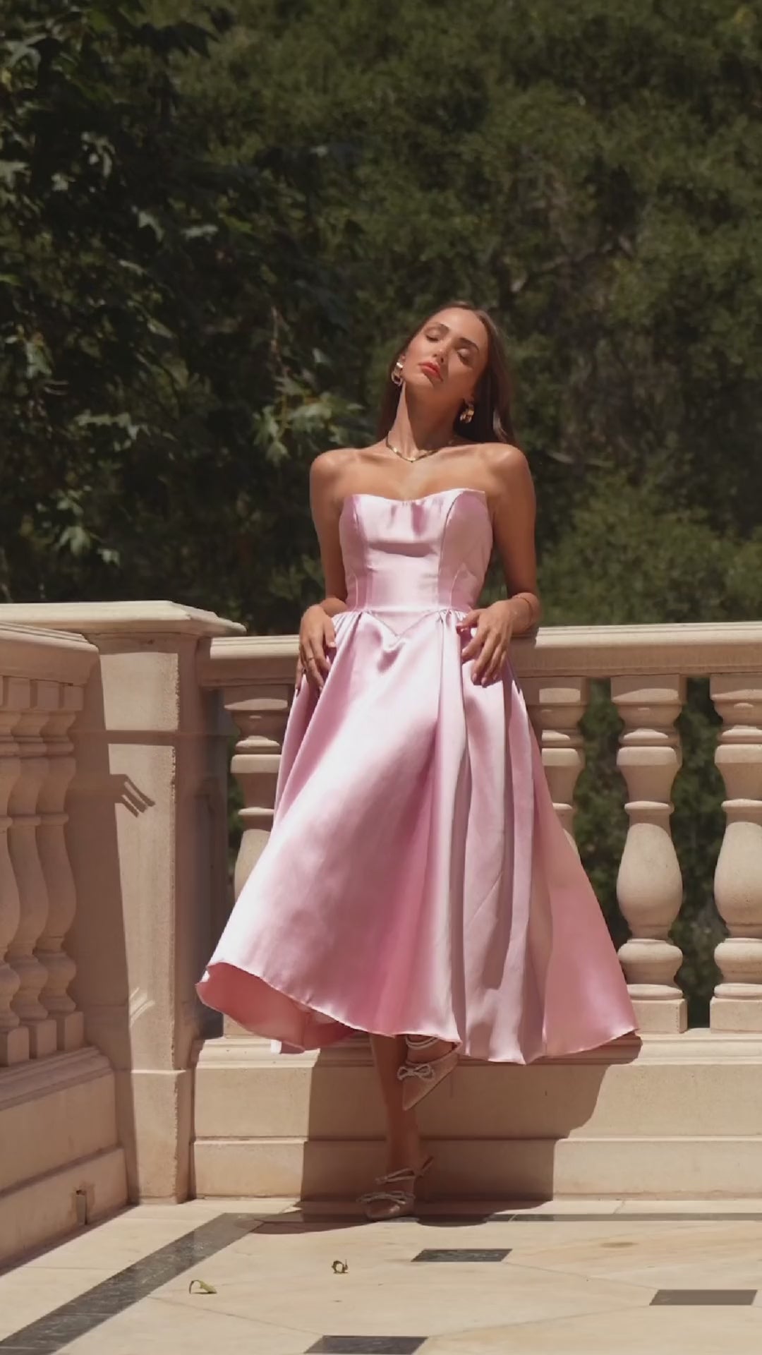 Step into modern romance with this elegant Mikado midi gown, designed for chic celebrations and timeless style. The strapless neckline is clean and structured, complemented by a sculpted bodice that creates a flattering, cinched waist. Its voluminous midi-length skirt delivers beautiful movement, making it perfect for dancing the night away. A lace-up back adds adjustable comfort and a touch of classic corsetry, while the luxurious Mikado fabric gives the dress its signature sheen and refined silhouette. Ideal for cocktail parties, semi-formal events, rehearsal dinners, graduation, wedding guests, and any special occasion that calls for polished sophistication.
